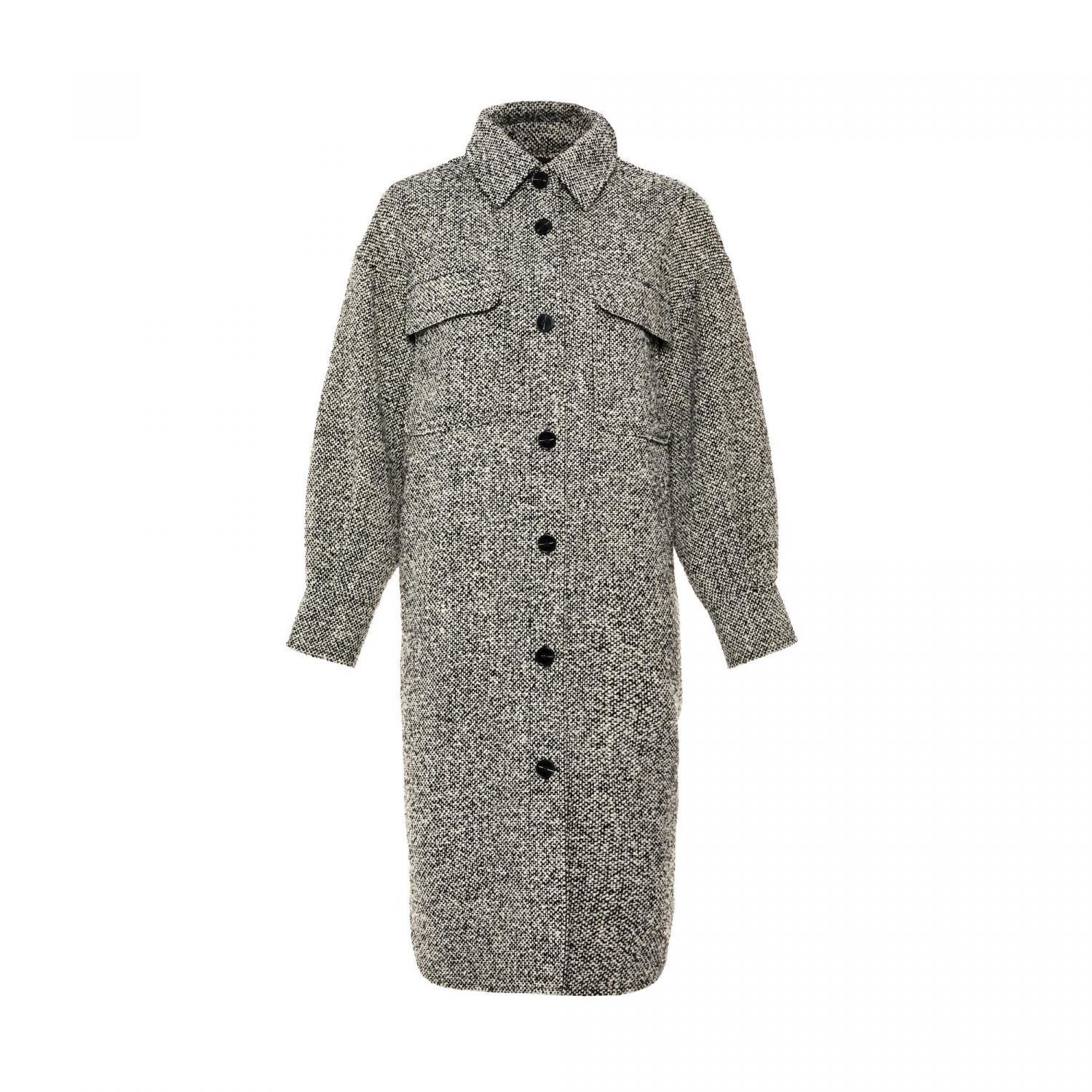 La firma irlandesa nos sorprende con este modelo de sobrecamisa en versión extralarga. En tejido tweed que combina blanco y negro. Si la combinas con un bonito cinturón, incluso puedes llevarla a modo de vestido.