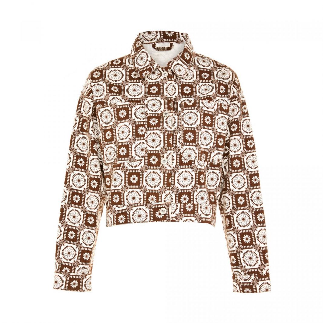 Tiene el corte de las chaquetas vaqueras de toda la vida. Con botones con solapa en la parte delantera, cierre con botones metálicos, botones en las mangas y botón de ajuste en la cintura. Pero su estampado es tremendamente original.