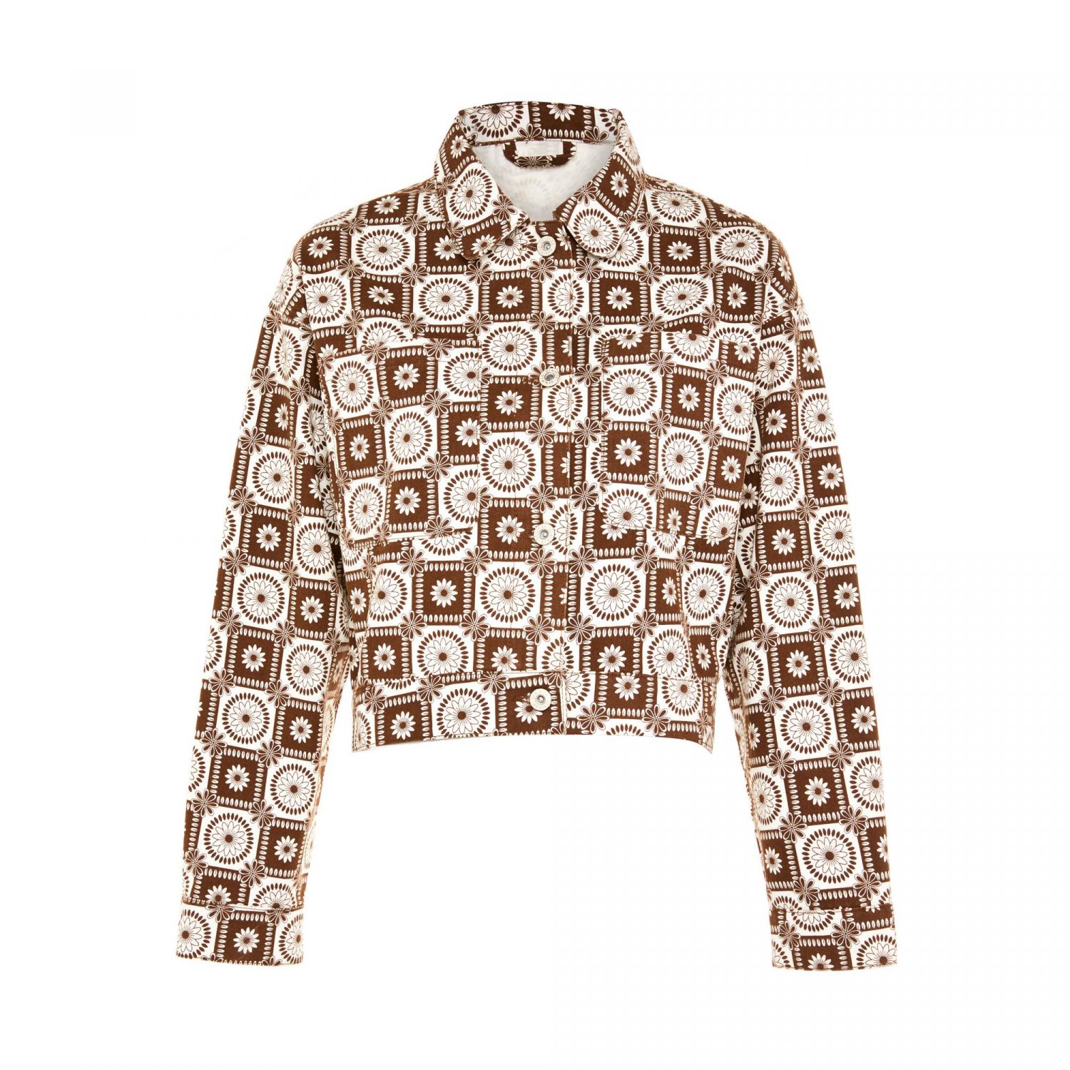 Tiene el corte de las chaquetas vaqueras de toda la vida. Con botones con solapa en la parte delantera, cierre con botones metálicos, botones en las mangas y botón de ajuste en la cintura. Pero su estampado es tremendamente original.
