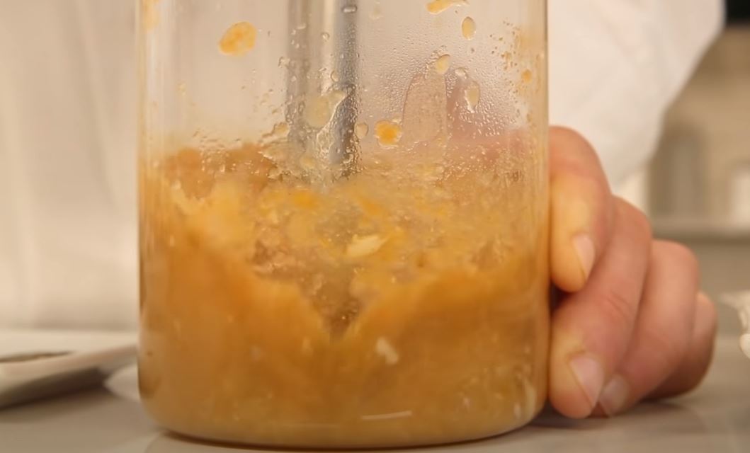 Una vez se ha completado el paso anterior, lo siguiente para esta salsa para las albóndigas será pasar la salsa a una jarra y triturar muy bien con ayuda de una batidora.