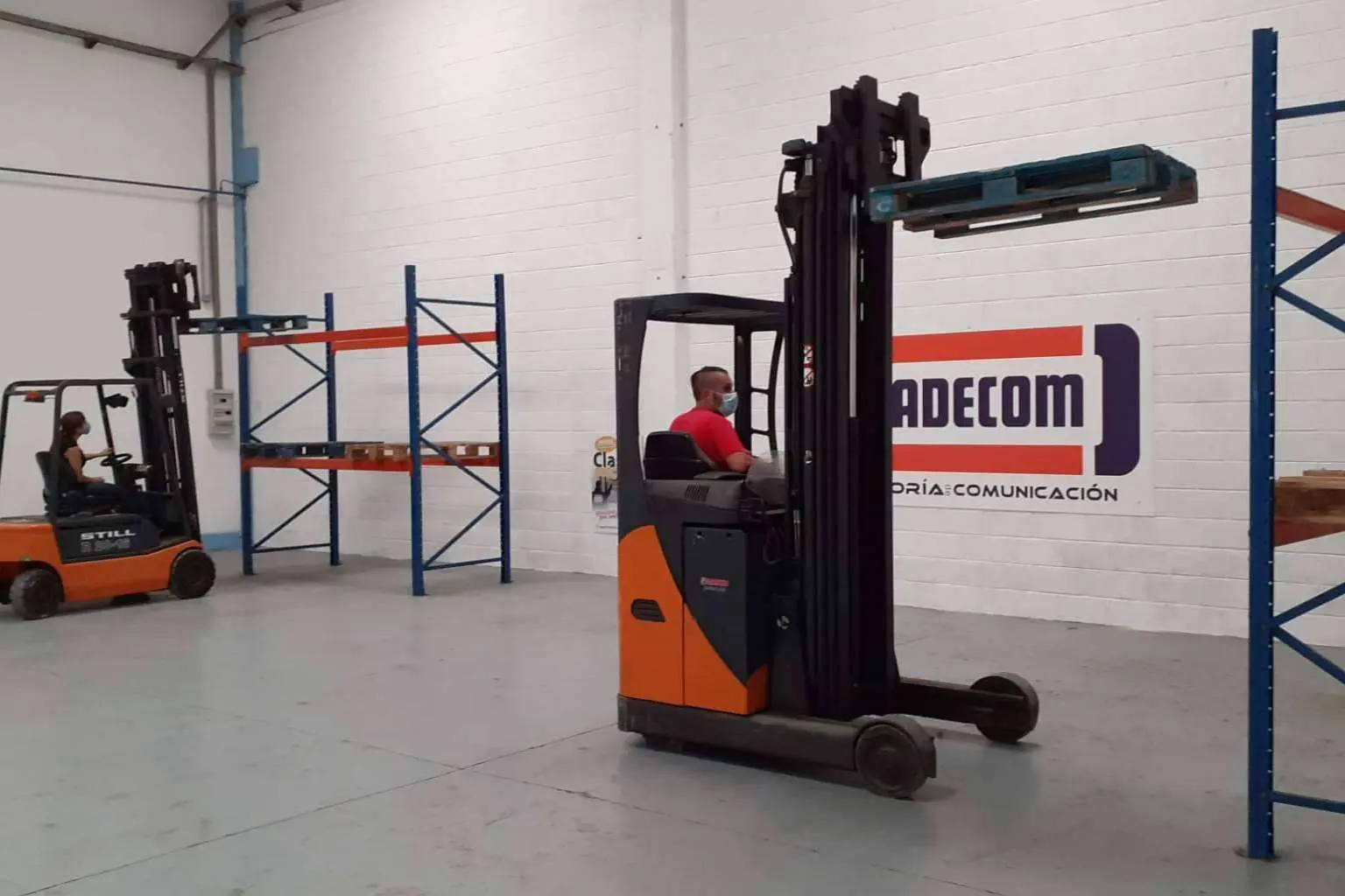 Luego, se complementa con el curso de carretillero «UNE 58451», en el cual se aprende a manipular hasta 10.000 kg. Partiendo del paquete básico de Fadecom, que comprende el manejo de la carretilla frontal y la carretilla traspalé, las empresas tienen la disponibilidad de escoger el tipo de maquinaria específica que necesitan aprender. Finalmente, el especializado en carretillas bilateral y trilateral, que se lleva a cabo por expertos en este tipo de maquinaria.