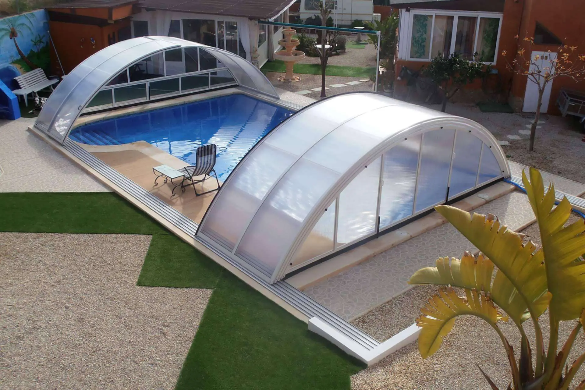 La empresa COVERTTO, especialista en la fabricación de cubiertas para piscinas, ofrece grandes opciones para mantener el agua azul, cristalina, limpia, cálida y segura. Uno de los productos más solicitados por su eficiencia, es la cubierta de piscina baja con carril, siendo el modelo Segóbriga uno de los modelos preferidos para satisfacer las necesidades del cliente.