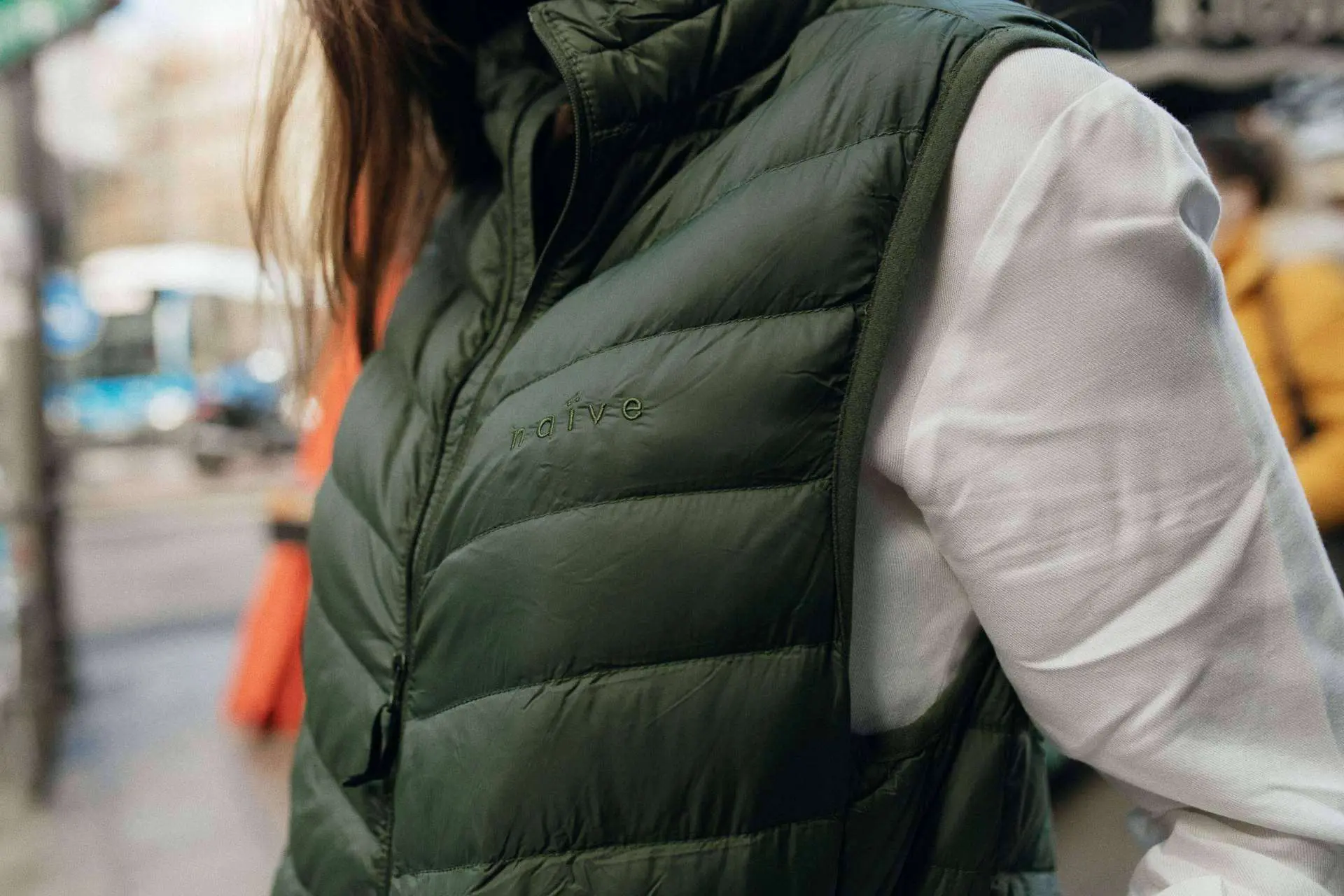 Si bien los calcetines son el producto estrella, Naïve diseña otras prendas para adecuarse a todas las temporadas del año. En invierno, los chalecos de plumas son ideales para usar debajo de cualquier estilo de abrigo o como prenda exterior. En la página web, hay tres presentaciones resistentes al agua y cortavientos, que se pueden complementar con cualquiera de los modelos de calcetines disponibles en el stock.