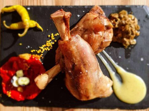 El cochinillo ibérico confitado es otro alimento insignia de la cocina española. La integración de la grasa entre la sabrosa carne y la piel crujiente hacen de este plato una delicia. Esas tres capas son el sello distintivo que da un sabor excepcional y particular a este cochinillo confitado que une el crocante con lo magro y lo tierno.