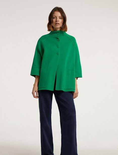 En Parfois se pueden encontrar prendas de ropa que merecen mucho la pena. Sobre todo porque tienen diseños muy originales. Y una de ellas es, por ejemplo, este bonito poncho de color verde. Destaca por estar fabricado a base de punto y sobre todo por tener un cuello alto muy original. Si te decides a comprarlo tan solo vas a tener que pagar 32’99 euros por él.