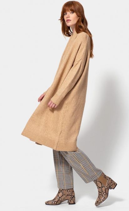 Esta es una de las prendas más especiales de todas las que hemos tenido la oportunidad de ver en el catálogo de Carrefour. Se trata de una chaqueta larga que tiene un diseño largo, está fabricado a base de punto y no tiene botones. Su precio es de tan solo 7’99 euros.