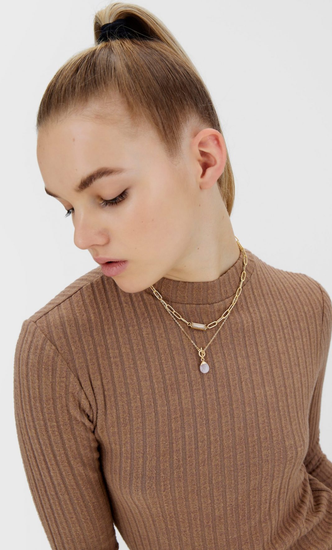 Las tiendas de Stradivarius han alcanzado una gran fama en España por la gran variedad de ropa que ofrecen a todo tipo de precios. Sin embargo, también destaca por sus accesorios. y por su bisutería. En sus tiendas se pueden encontrar collares como el que te presentamos a continuación, pero también anillos, pendientes, bolsos… Echa un ojo a todo.
