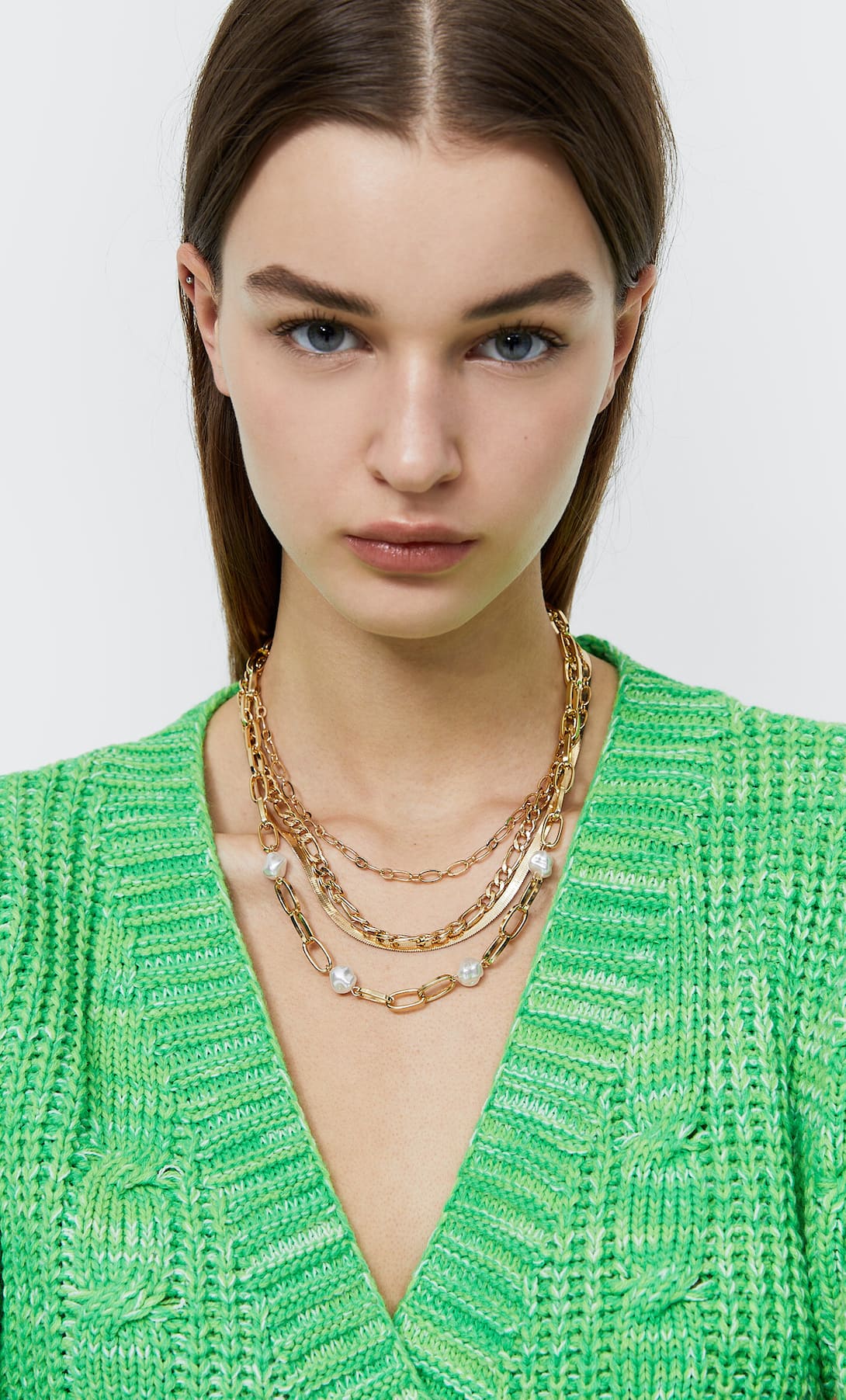 Las tiendas de Stradivarius han alcanzado una gran fama en España por la gran variedad de ropa que ofrecen a todo tipo de precios. Sin embargo, también destaca por sus accesorios. y por su bisutería. En sus tiendas se pueden encontrar collares como el que te presentamos a continuación, pero también anillos, pendientes, bolsos… Echa un ojo a todo.