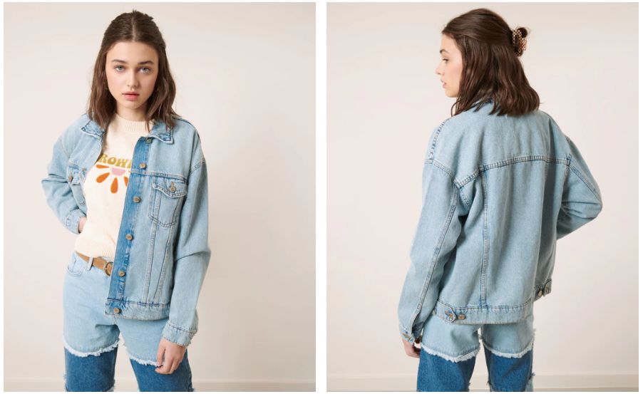 Comenzamos con un modelo oversize, este de cazadora vaquera de Brownie, de la nueva colección y en color azul. Se trata de un modelo tejano oversized con cuellos de solapa y bolsillos vistos en la parte superior. Dispone de otros bolsillos en la parte inferior y cierre mediante botones metálicos. Está fabricada en algodón al 100% y ahora la puedes comprar en El Corte Inglés por 69,90 euros.