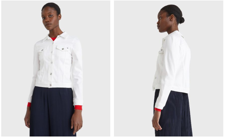 Vamos con una propuesta original y diferente, sin dejar lo vaquero. También es tendencia el modelo en blanco y El Corte Inglés te ofrece esta prenda de Tommy Hilfiger entallada con cierre de botones y que rezuma elegancia y estilo. Lo vaquero puede tener mucha clase y servir para ocasiones especiales, como es el caso. Este modelo casi 100% algodón tiene un coste de 129,90 euros y lo puedes comprar en este enlace.