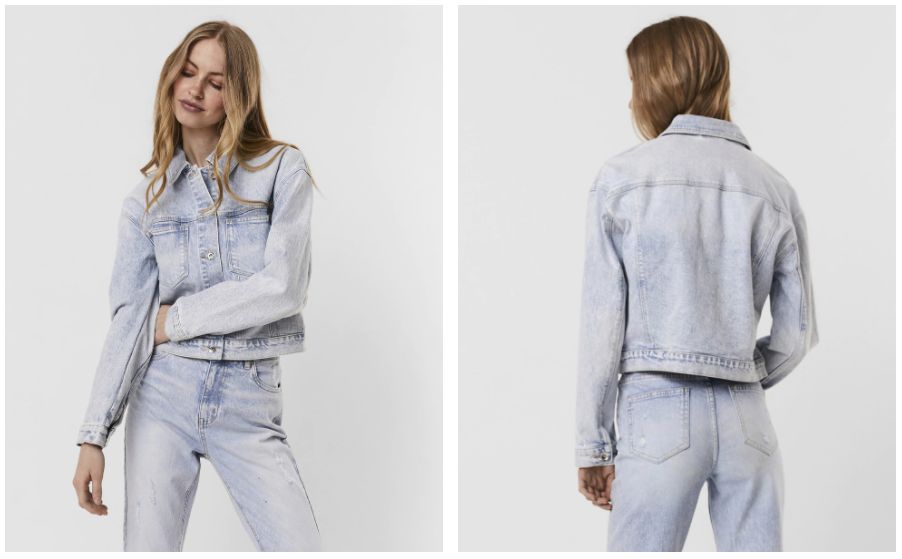 Y de lo más caro a lo más económico, con un modelo sencillo y típico de cazadora vaquera de toda la vida, sencilla y moderna, para llevar casual. Este de Vero Moda es de color azul, manga larga, con dos bolsillos frontales y contiene material reciclado. Está fabricada en un 79% en algodón y el resto en algodón reciclado y elastano. Su precio en El Corte Inglés es de tan solo 39,99 euros y la puedes comprar aquí.