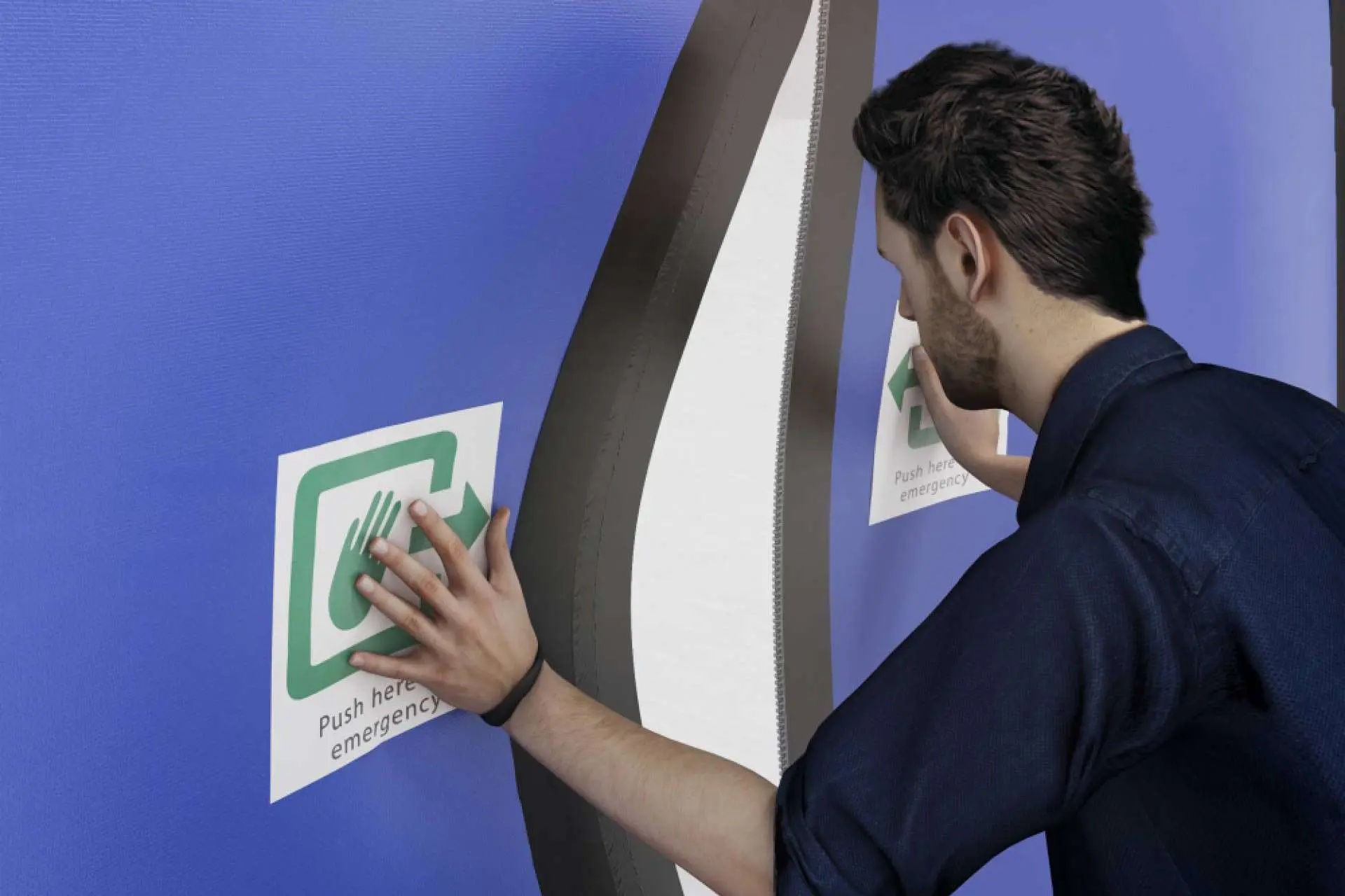 Los modelos que ofrece la compañía están diseñados con un mecanismo de puerta enrollable con un corte en forma de T y retenido por cremalleras simétricas, que permite que las dos solapas abran una salida de emergencia simplemente presionando en el punto de liberación indicado con una señal sencilla y universal. Este sistema hace innecesarias las barras con peso o los sistemas de tensión que tienden a demorar por algunos segundos los protocolos de evacuación. Además cada puerta tiene la posibilidad de incluir aberturas tipo ventana que permitan la entrada de luz natural, así como la visualización clara del interior de los espacios, lo que en consecuencia podría facilitar el trabajo de organismos de socorro en caso de que exista personal atrapado durante una emergencia.
