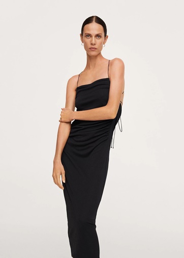Lo vemos así como in vestido negro midi con la con una abertura en la espalda que le añade feminidad y sofisticación. Con abertura en la espalda, se ve con una apariencia muy atractiva que permite vestirse con diversidad de piezas de nuestro armario. Una apuesta segura de la que siempre saldrás ganado. Tiene un precio rebajado en la web de Mango de 17,99 euros.
