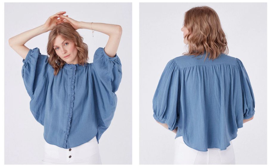 Volvemos con la marca Naf Naf, concretamente con esta de manga francesa y con cuello de mao. Se vende en El Corte Inglés en color azul, con un 60% rebajada y un precio de 22,90 euros. Es una prenda de mujer con cierre abotonado delantero y con mini volantes de crochet. Está fabricada 100% en algodón, con lo que irás cómoda y además apenas sentirás que la llevas, todo lo contrario de quien te vea, ya que no pasa desapercibida. Aquí la puedes comprar online.
