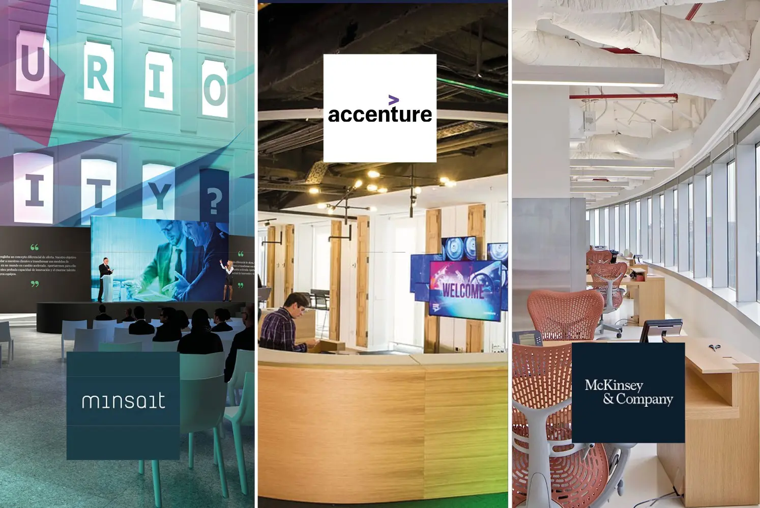Tras Minsait, liderada por Cristina Ruiz, le siguen en el podio de las mejores consultoras en cuanto a retención y atracción de talento Accenture, multinacional de consultoría estratégica y servicios tecnológicos dirigida en España por Domingo Mirón y Mckinsey, consultora especializada en administración estratégica con Alejandro Beltrán al frente.