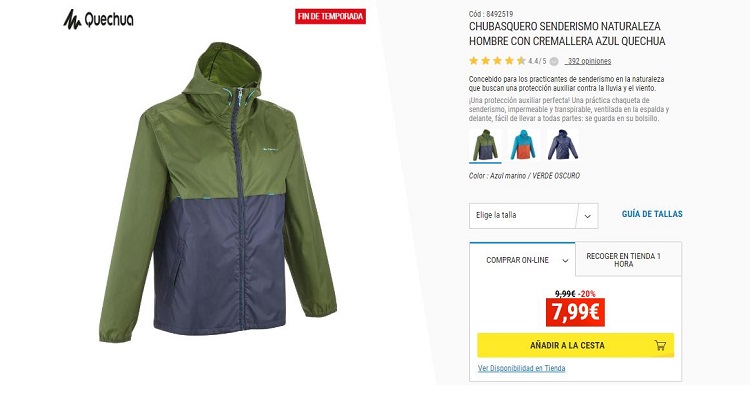 Su precio es de solo 7,99 euros, pues está rebajada un 20% de los 9,99 euros que costaba originalmente. La tenemos en azul marino/verde oscuro, en tierra de siena/verde azulado y en azul marino. Tenemos de la talla S, a la talla 3XL.