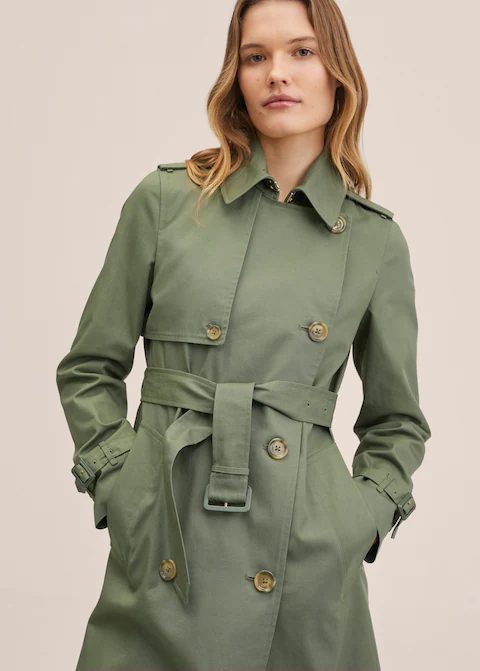 Otras de la prendas de vestir, ideal para la primavera que trajo Mango, para las damas, que desean resaltar su porte ejecutivo y elegante, es la Gabardina clásica algodón, repelente al agua, por si en alguna noche dando un paseo, las gotas de la lluvia se dirigen hacia ti.