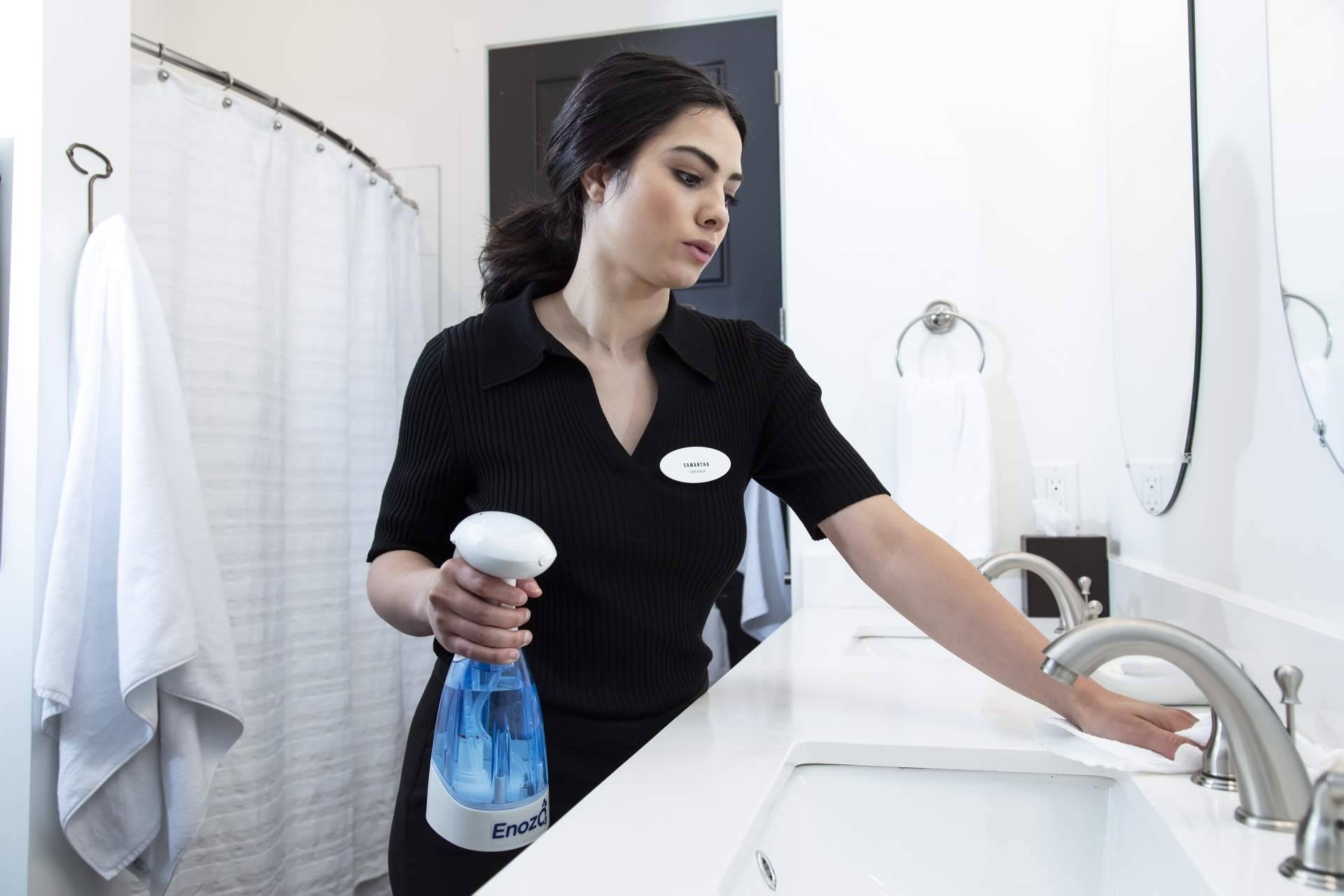Sin embargo, actualmente con la tecnología disruptiva eco sostenible de Enozo Proecoway, únicamente es necesario contar con un producto para realizar la limpieza de todas las instalaciones de una empresa o pequeño negocio. Por lo tanto, se produce un gran ahorro en la compra de distintos productos químicos, se reduce el desperdicio de agua y se genera mayor eficiencia en el proceso de limpieza. Además, el uso del Enozo en lugares de trabajo minimiza el riesgo de exposición para todo el personal, los clientes y las instalaciones, a la vez que protege la calidad del aire interior.