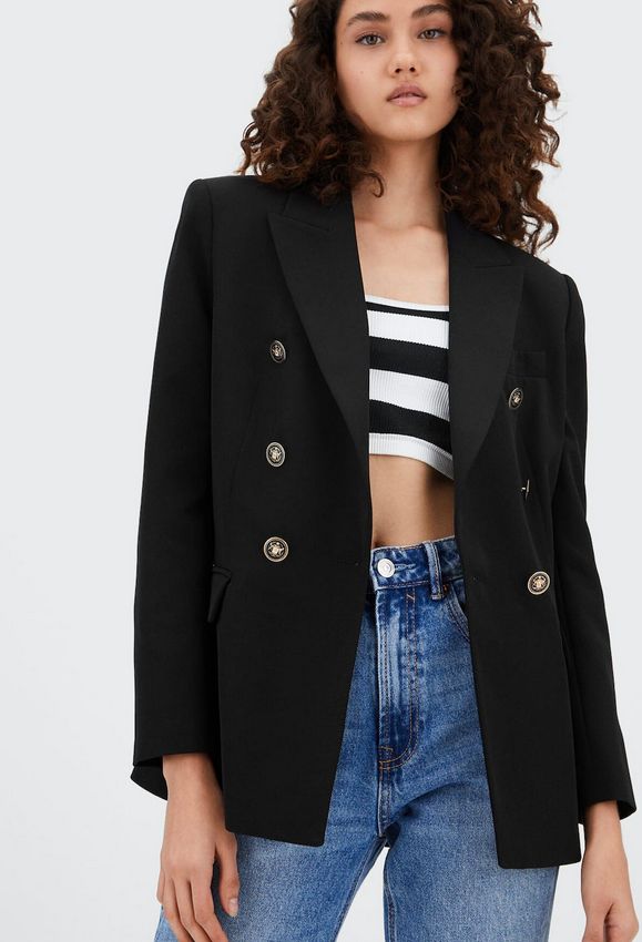 Esta es una de las chaquetas americanas más bonitas que hemos visto en mucho tiempo. Y todo por el detalle tan bonito que crea en ella los botones metálicos que tiene incrustados. Por lo demás, tiene varios bolsillos en la solapa y un precio de escándalo, ya que solo cuesta 35’99 euros.