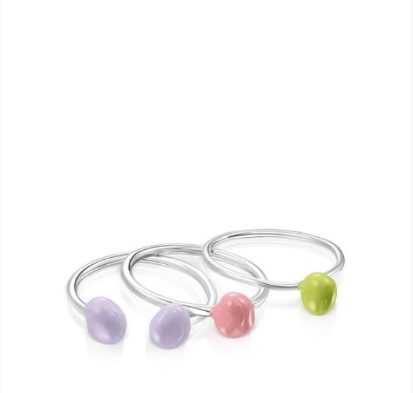3Pack de anillos de plata y esmalte de colores Joy Bits, de Tous