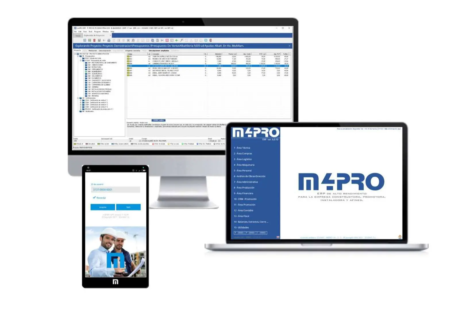 El software m4PRO es un ERP que ha sido diseñado incorporando todos los procesos que necesariamente se deben gestionar y llevar a cabo por las empresas constructoras. Además, como está diseñado específicamente para este sector, es de gran ayuda a la hora de hacer un estudio correcto de los proyectos y, a la vez, mejora su ejecución, favoreciendo el control y el seguimiento de la evolución de la obra, sin importar la tipología que esta tenga.