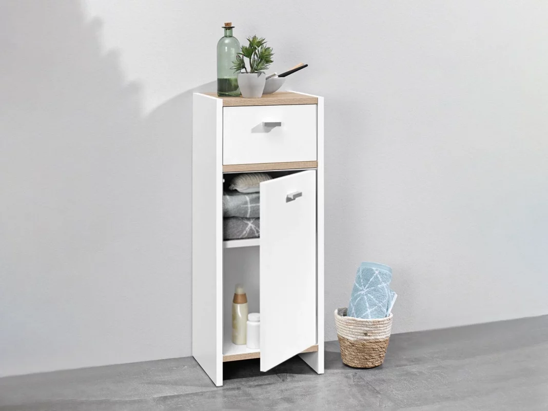 Nada más cómodo que tener organizado dentro del baño, todos los artículos que con frecuentas utilizas dentro de él. Para esto Lidl tiene el Armario de baño que viene equipado con 1 cajón y 2 compartimientos. En acabado mate de alta calidad y protectores para no reyar el piso.