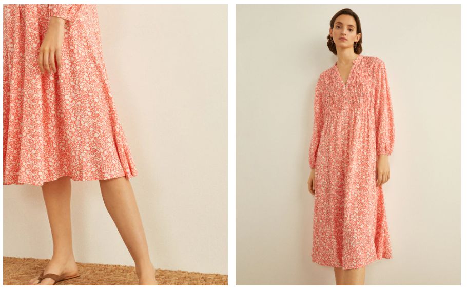 No vamos abandonar la marca Southern Cotton en las siguientes propuestas, ya que tienes en El Corte Inglés una gran variedad en la nueva colección de primavera en cuanto a vestidos. Por ejemplo esta otra magnífica propuesta en fucsia o azul de vestido mido estampado en flores de manga larga con goma en el puño, cuello pico con cierre de botones y detalle de panel elástico en el cuerpo. Es un vestido ligero y femenino confeccionado en un tejido muy especial con detalles de lúrex. Su precio es de 69,99 euros. A qué esperas.