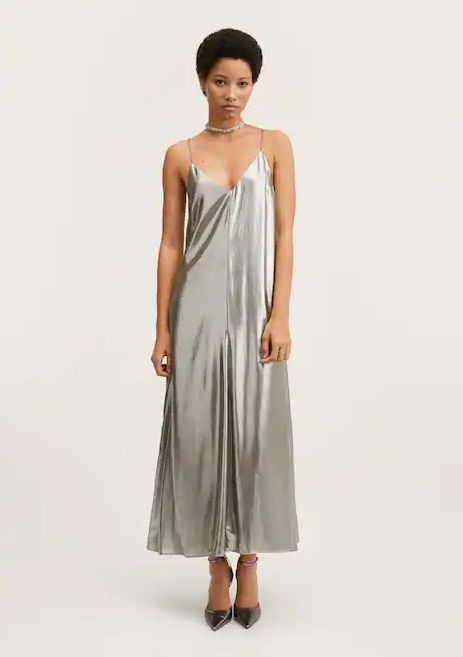 Una prenda de vestir para cualquier noche de gala, todo tu glamur se reflejara con el toque formal que requieras. Para esa noche especial, visita las tiendas Mango y busca el Vestido largo Metalizado, con su cuello escotado para que destaques tus accesorios.