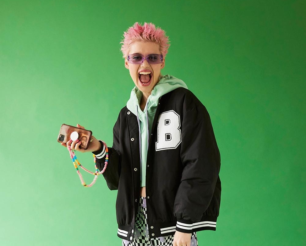 Si te gusta el estilo americano universitario para dar un toque más juvenil a tus looks, entonces deberías ver esta chaqueta universitaria negra con letra B en contraste.