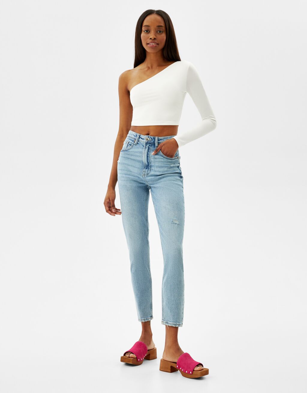 No pueden faltar los jeans en Bershka y para primavera te tienen el Jeans mom slim confort. Puedes usarlo cualquier día en cualquier evento, al igual que todo jeans es muy fácil su combinación.