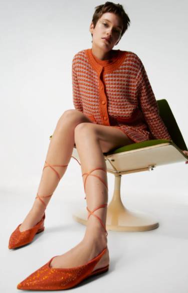 Los zapatos sin tacón también pueden ser impactantes y originales. Como muestra, aquí tenemos estas sorprendentes manoletinas de Zara. Disponibles en varios colores súper llamativos y también en un bonito negro.