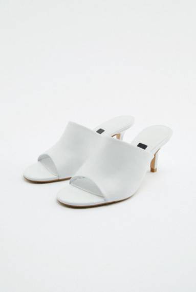Se trata de unas sandalias tipo mule confeccionadas en piel, con abertura en la parte delantera y un tacón de 8,5 cm. Con plantilla técnica flexible de espuma para que vayas todavía más cómoda.