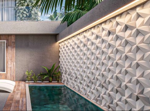 Uno de los más llamativos, en este sentido, es el modelo Gaudí, cuyo diseño juega con varias curvaturas e irregularidades, lo cual le da a la pared cierto espesor visual que deja una sensación de movimiento en aquellos que la observan. Un efecto similar se percibe en los revestimientos Anubis y Walk, los cuales también generan una sensación volumen tridimensional, pero con diferentes configuraciones de patrones triangulares.