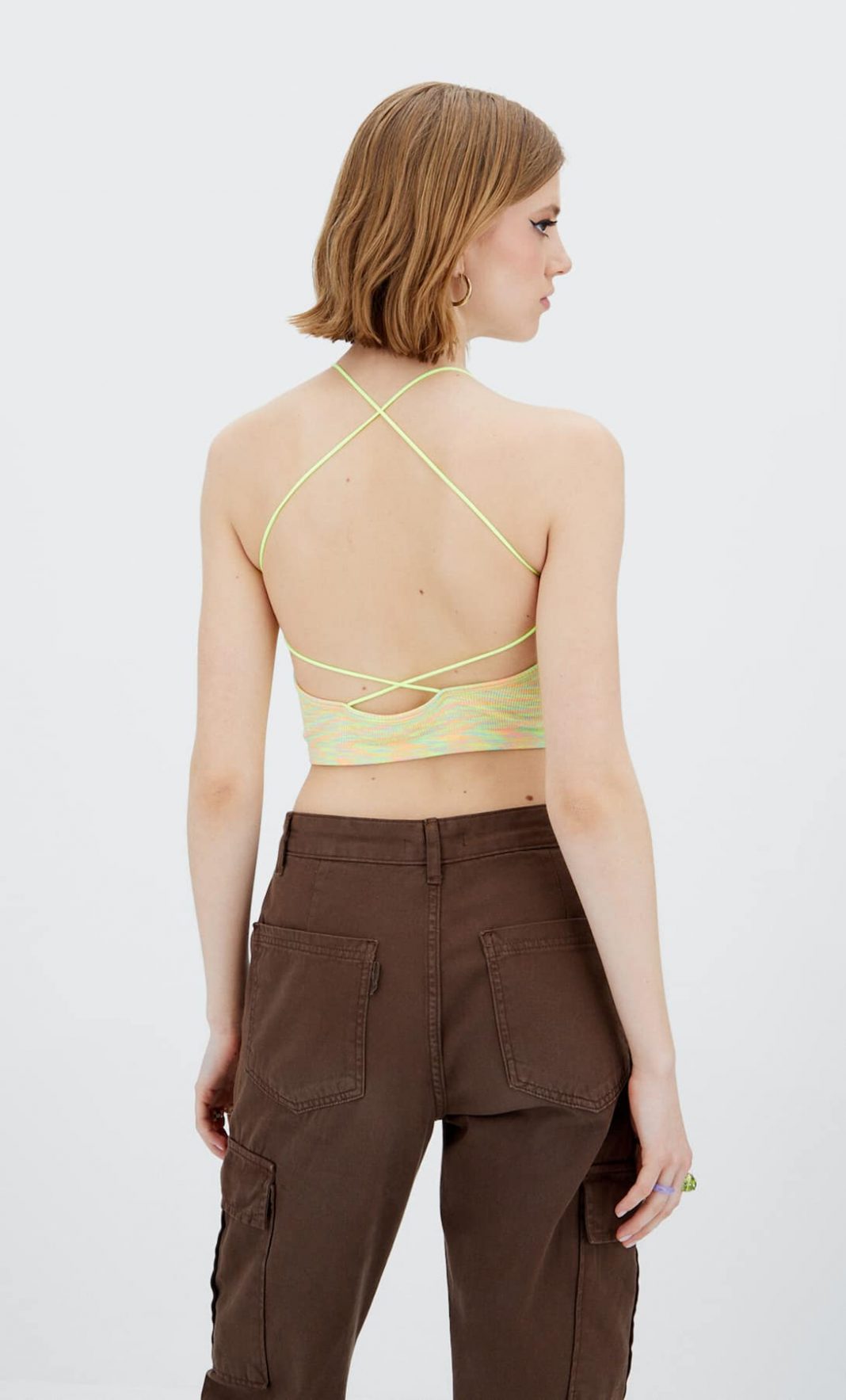 Ajustado a tu cuerpo, con delicados tirantes finos que se cruzan en tu espalda, con un atractivo escolt4 redondo, Puedes destacar tu look atrevido en cualquier momento. Llévatelo en un delicado color verde lima y por solo 7,99 euros.