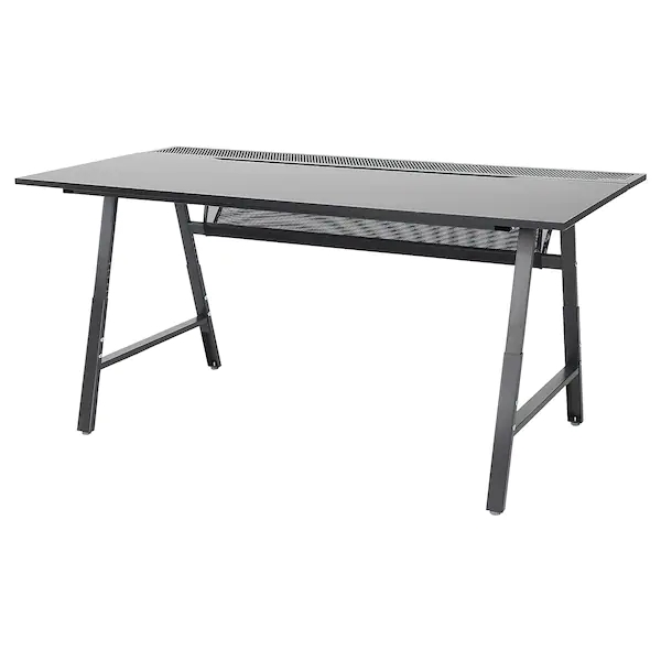 El sillón anterior lo puedes combinar con esta mesa-escritorio de Ikea. Puedes elegirla en gris claro o en negro, ambas por 149€ la unidad. Este escritorio gaming tiene unas medidas de 160×80 cm.