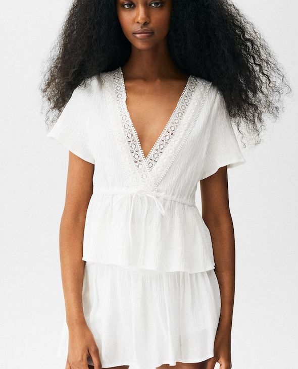 Esta blusa de Pull&Bear es una de las prendas más solicitadas en cualquiera de sus tiendas. Destca por tener un escote en forma de pico y unos originales detalles de bordados. Su precio es de tan solo 17’99 euros.