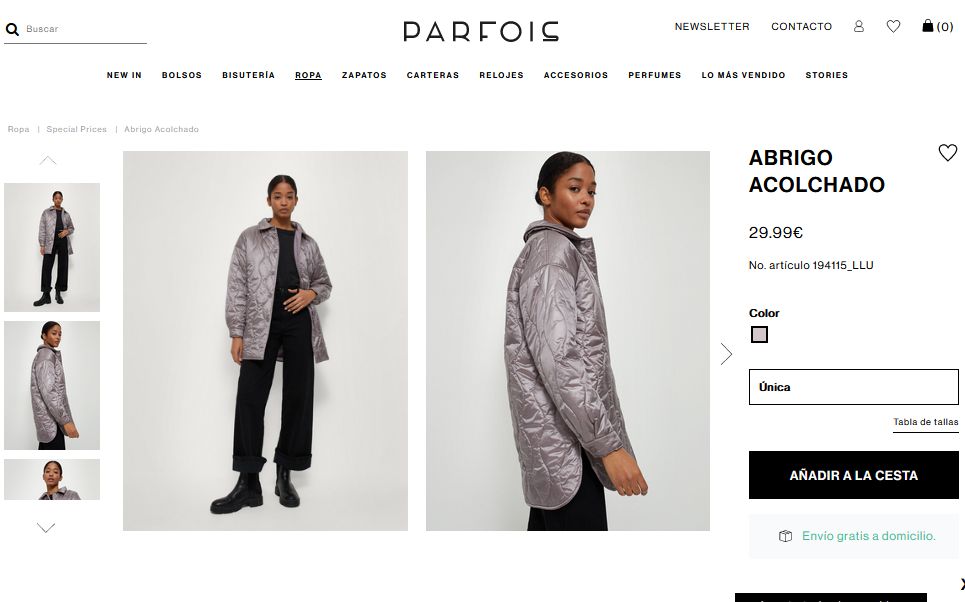 Abrigo acolchado y con cuello de solapa. Manga larga con botón de presión. Cierre delantero con botones de presión. Producto disponible en talla única, diseñado para crear las siluetas más variadas y adaptarse a diferentes tipos de cuerpo. Entonces, si lo desean comprar solo tienen que entrar a Parfois por 29.99€.