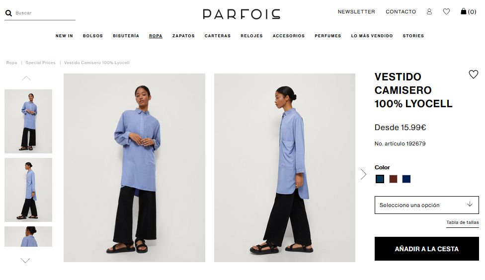 Vestido camisero 100% Lyocell con un Cuello de solapa. Cierre frontal con botones. Bolsillo delantero y es de manga larga con botón. La modelo lleva una talla XS-S y mide 1.70 cm. Inclusive, es perfecto de usar con otra prenda de la misma tienda. Por lo que, si lo desean comprar solo deben entrar a Parfois por 15.99€.