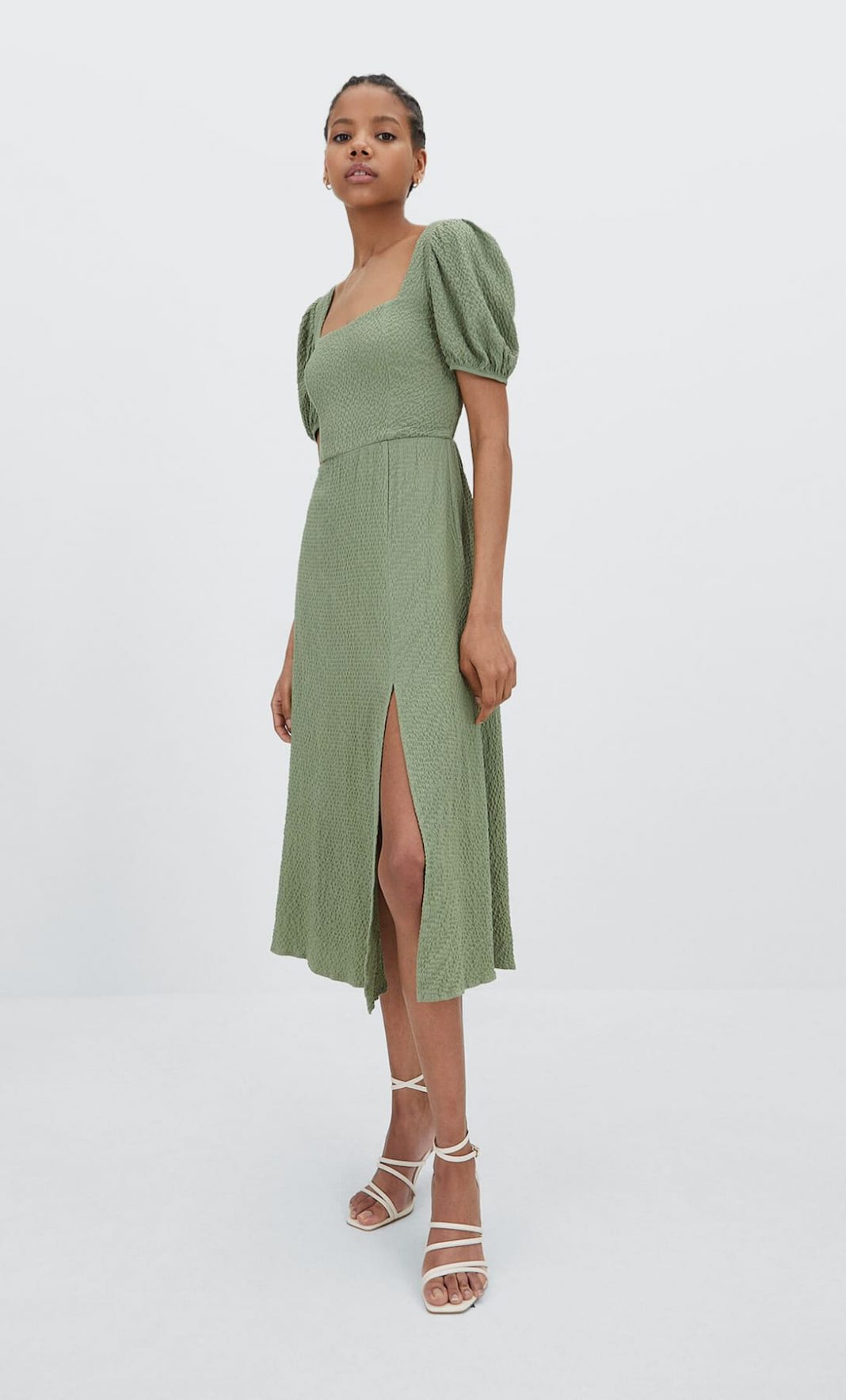 Si buscas un vestido, donde quieras destacar toda tu clase, visita las tiendas Stradivarius y revisa el Vestido midi espalda lazada. Para que lo modeles en cualquier ocasión que requieras un toque algo formal.
