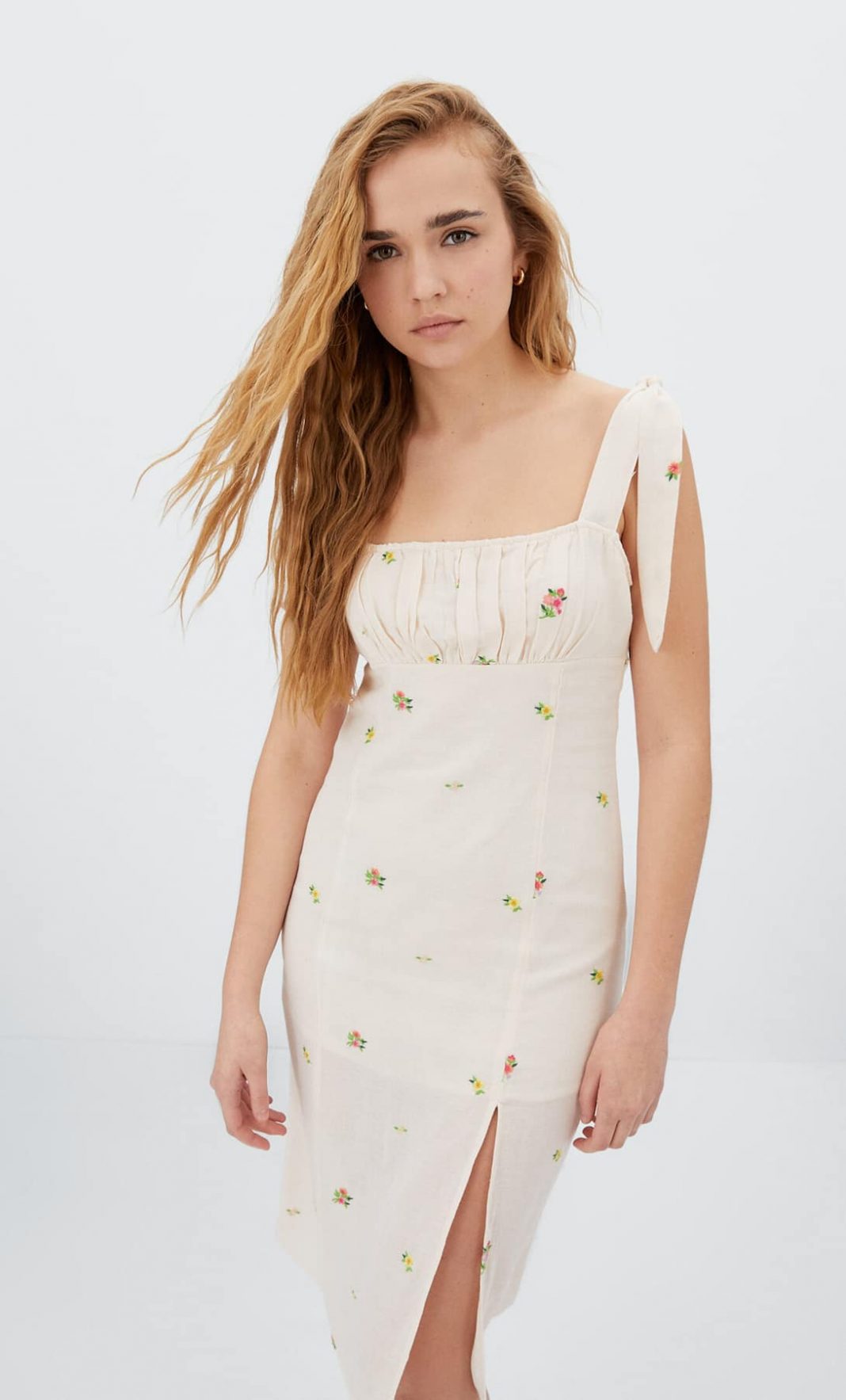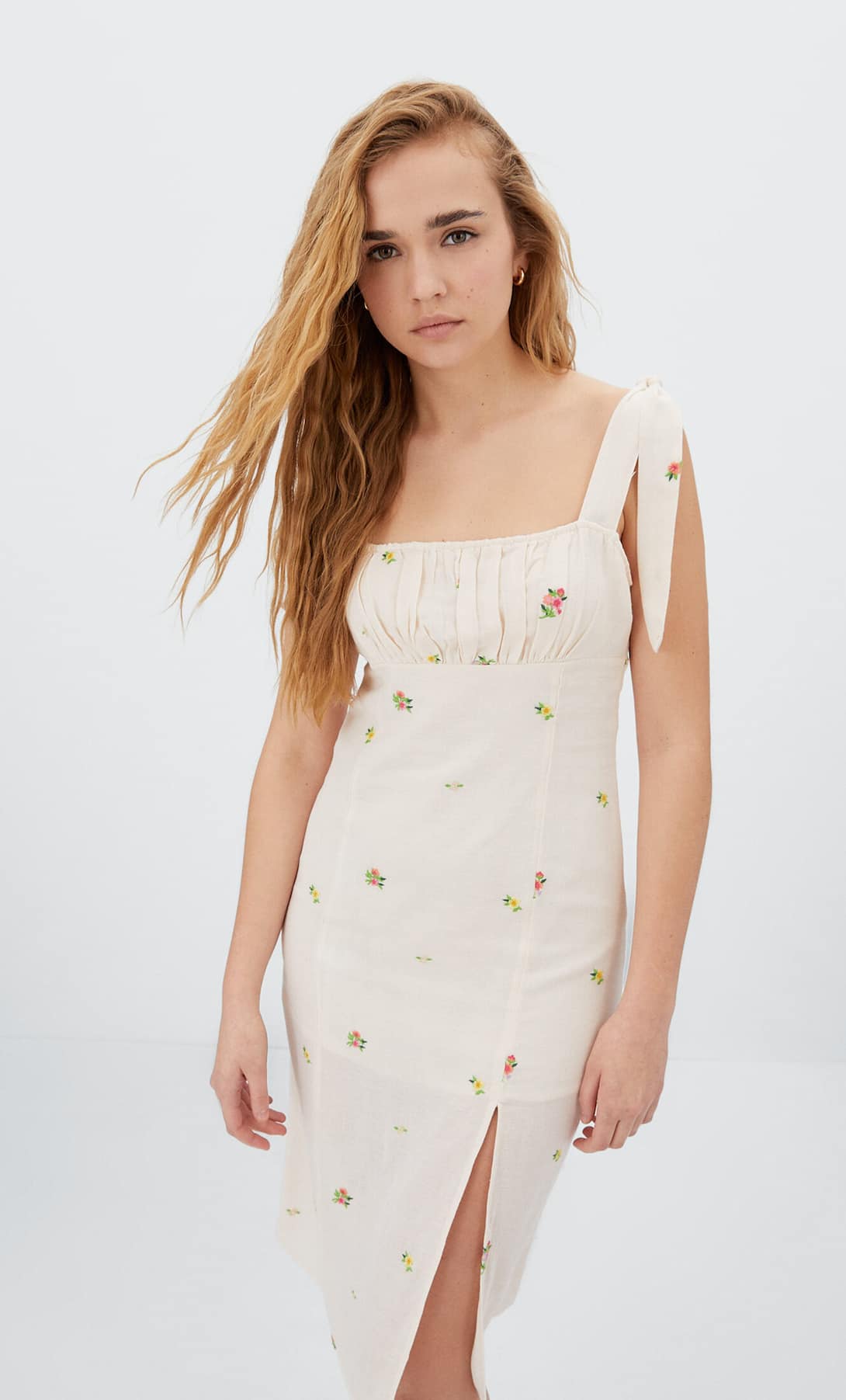 4Vestido midi bordado Bridgerton Stradivarius