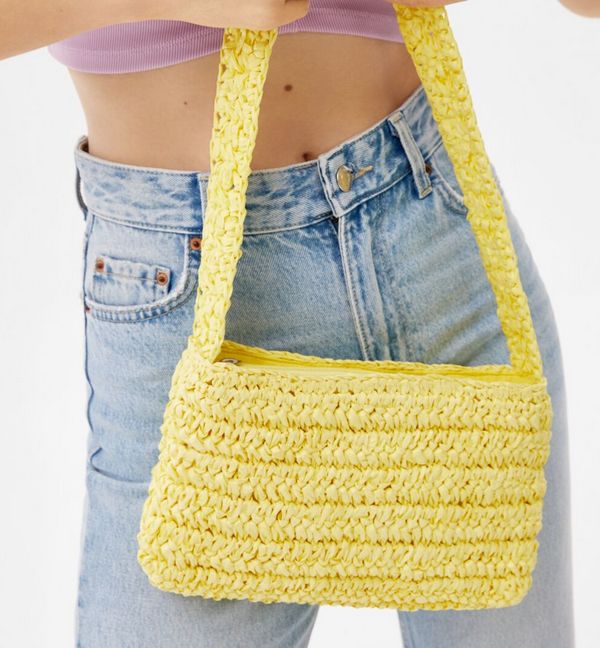 ¿Te has dado cuenta de que desde hace un tiempo hasta esta parte los bolsos que están fabricados con tejido de rafia se han puesto muy de moda? Si para ir a la última quieres comprarte uno te recomendamos que te pases por cualquiera de las tiendas que Bershka tiene repartidas a lo largo del país. Porque en ellas vas a poder encontrar este tan mono de color amarillo y que está muy bien de precio. Solo cuesta 17’99 euros.