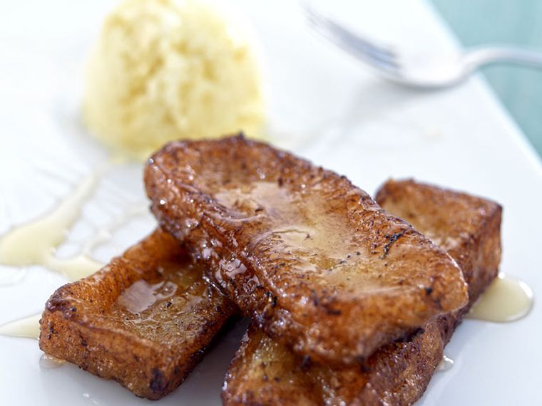 La versión de Arguiñano es tan original como deliciosa. Para elaborar suficientes para cuatro personas necesitas 8 bollitos para hamburguesa (mejor de los que no tienen semillas de sésamo por encima), un litro de leche, un par de cucharadas de leche condensada y dos o tres huevos.
