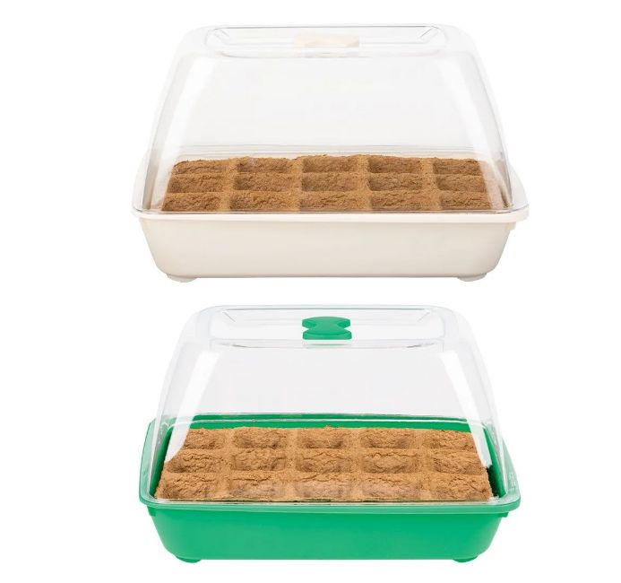El mini invernadero es uno de los productos más nuevos de Lidl, y es perfecto para iniciarse en los cultivos sencillos, tanto para niños como para adultos. Se trata de un completo set que incluye semillas de calabacín, pimiento, pepino y tomate, una bandeja con 15 huecos, plantador y fibra de coco, y una tapa con ventilación regulable para controlar la temperatura. Mide 28,8 x 18,8 x 17 cm. y está disponible en verde y beige. Su precio es de 6,99€.