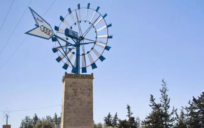 La firma de automóviles Audi ha transformado un molino de viento mallorquín en desuso en un generador de electricidad capaz de suministrar una potencia de hasta 15 kilovatios (kW) utilizando motores recuperados del Audi e-tron.
