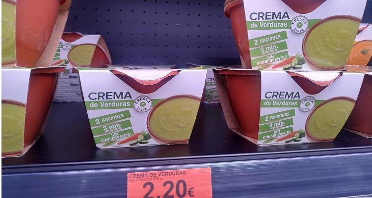 Por ello, puedes recurrir a los platos preparados basados en verduras que venden en Mercadona, siendo un buen ejemplo esta crema de verduras. Se vende en un práctico envase con dos raciones y está listo en tres minutos.