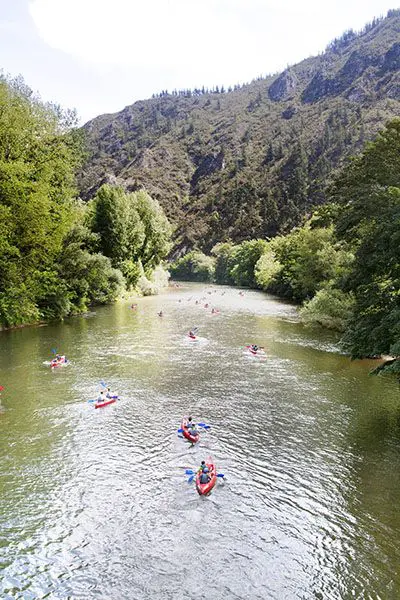 El descenso del Sella en canoa es una divertida experiencia de quince kilómetros que tiene lugar desde Arriondas a Llovio, en las inmediaciones de Ribadesella. Esta actividad es ideal para realizar con amigos, familia, niños e incluso mascotas.