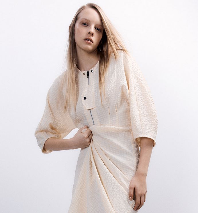 Este es uno de los vestidos más originales que hemos visto en mucho tiempo. Y todo porque tiene un diseño que se asemeja más bien al de una túnica. Es muy original, ¿no crees? Por lo demás, destaca por tener un detalle de trabillas y un sistema de cierre frontal con cremallera. Su precio es de tan solo 39’99 euros.