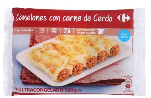 Los canelones son otro plato delicioso que gusta a todo el mundo. Sin embargo, son bastante difíciles de preparar si se quieren hacer caseros, ya que requieren de muchísimo trabajo en la cocina. Por este motivo, puedes comprar estos canelones de carne de cerdo de Carrefour que ya vienen preparados.