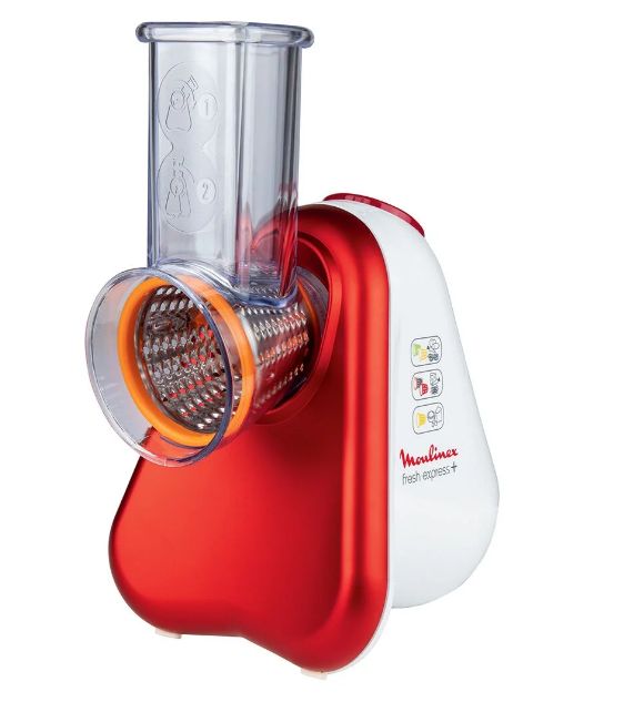 El rallador eléctrico de Lidl es de la marca Moulinex y es un aparato ideal para rallar quesos y verduras sin ningún esfuerzo, solo apretando un botón. Incluye 5 boquillas diferentes: un cortador fino, un rallador de patatas, un rallador fino, otro grueso y un rallador de parmesano. Funciona enchufado a la red eléctrica, y las boquillas de quita y pon se intercambia fácilmente y se pueden guardar dentro de propio dispositivo. Puedes hacerte con uno por 39,99€.