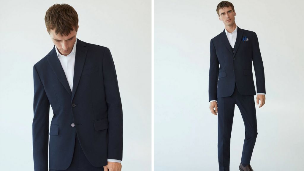Mango te la ofrece en varias tallas y en colores como el azul marino, azul marino oscuro, gris, negro, azul tinta, azul porcelana, y verde pastel.